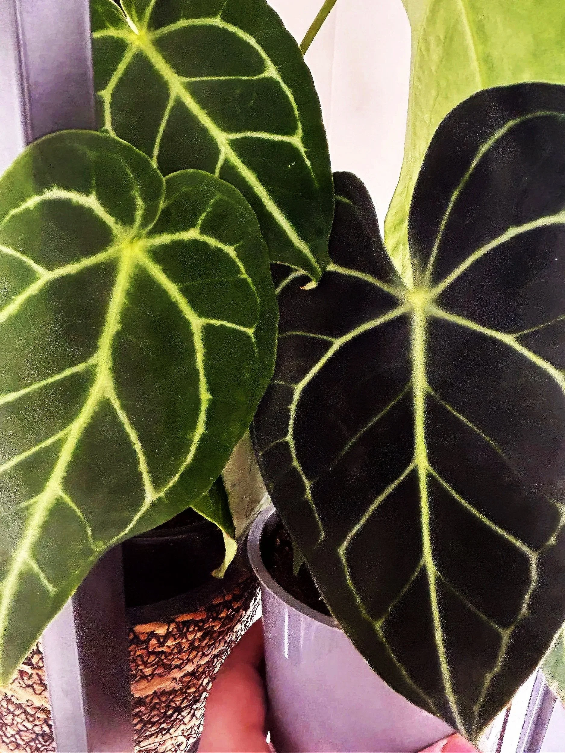 Anthuriums, like their Alocasia cousins, have various textures to their leaves, and each texture slightly alters how they respond to light and water.