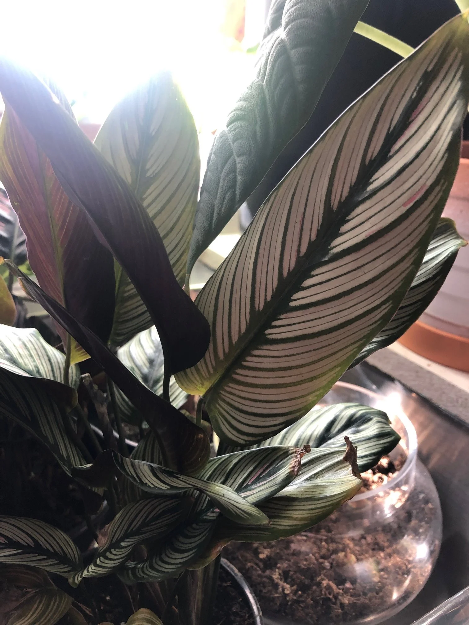 Named after the movement of their leaves, like praying hands, Calatheas leaves are gorgeously ornamental. For New Mexico, however, they are considered an advanced plant. Best to have a pebble tray and humidifier nearby at all times for larger versions. Smaller specimens can be kept in terrariums, domes, or with a pebble tray.