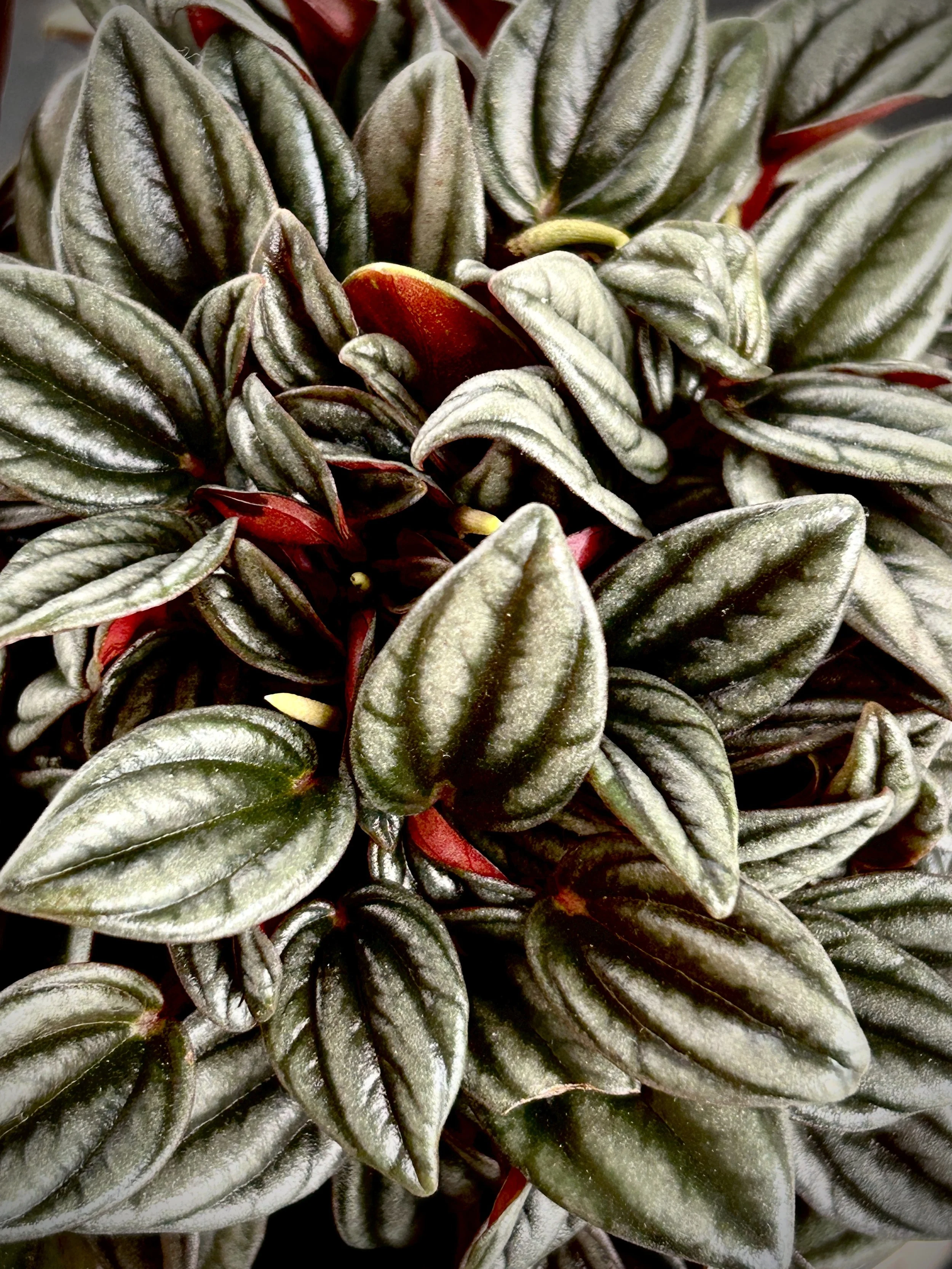 Peperomia are part of a tropical plant genus, with over 1,000 different varieties. Most have thick, succulent-like leaves that store water, making them resistant to drought. The growth patterns vary from trailing to rosette-forming.