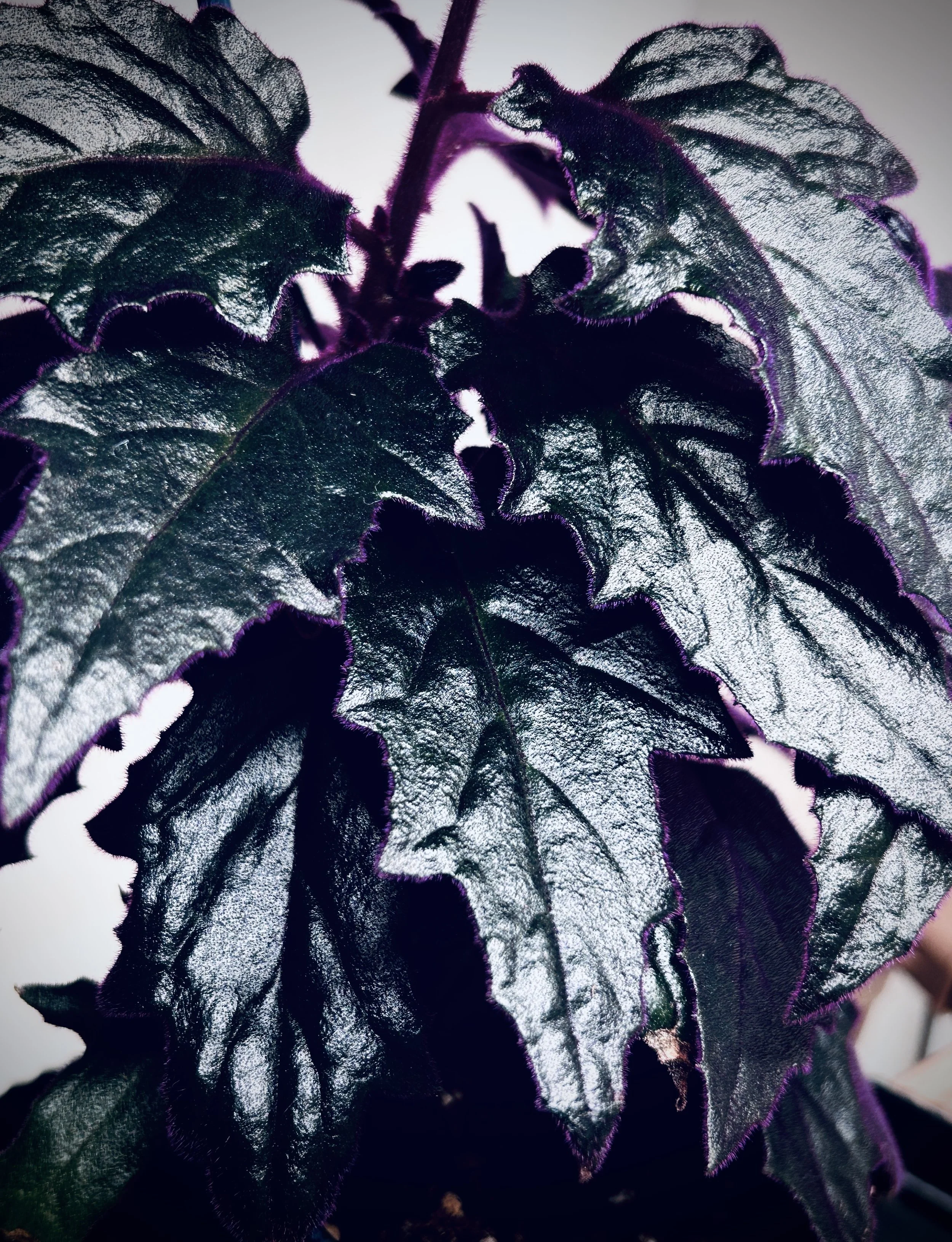 Purple Passion is a striking plant with dark green foliage layered in bright purple, velvety hairs. The purple color deepens with more sun exposure, as does the underlying green. A member of the daisy family, this plant produces bright yellow flowers.