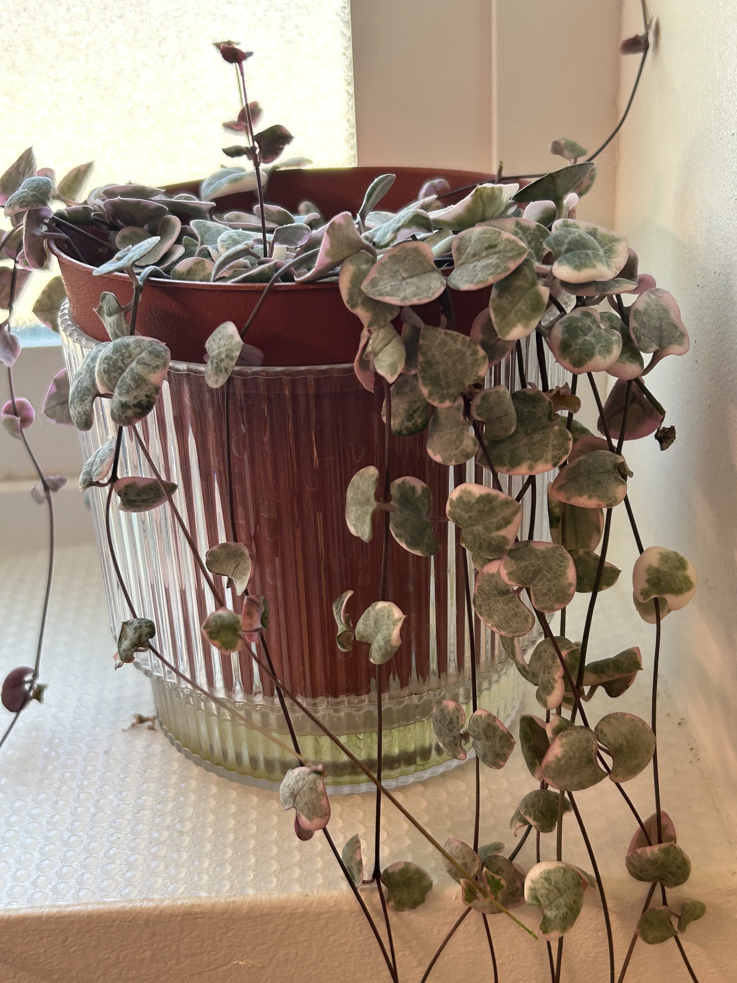 My secret is using self-watering pots but leaving them dry unless it’s watering day (example with orange pot inside clear pot above).
